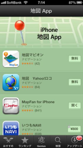 AppleがiTunes App Storeに「iPhone地図App」という他社製地図アプリを紹介するページを開設しています。 iTunes App StoreのiPhone地図App:iTunes App Store