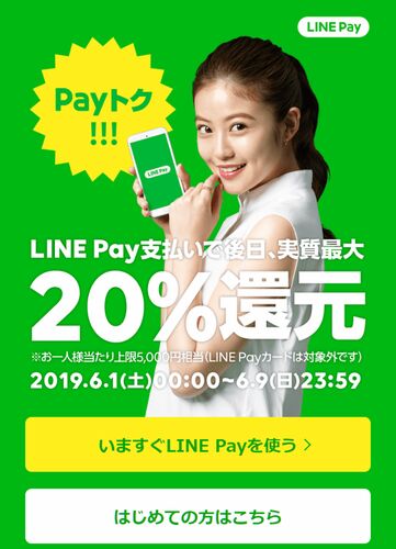 実質最大20%還元となるLINE PayのPayトク、6月1日(土)午前0時から開始です。 期間は6月9日(日)23時59分まで。 とりあえず、頭に入れておきたいのは、 還元額は最大5,000円相当 → 期間中に1回でもLINE Payアプリで支払えば最大10,000円分還元 対象の支払…