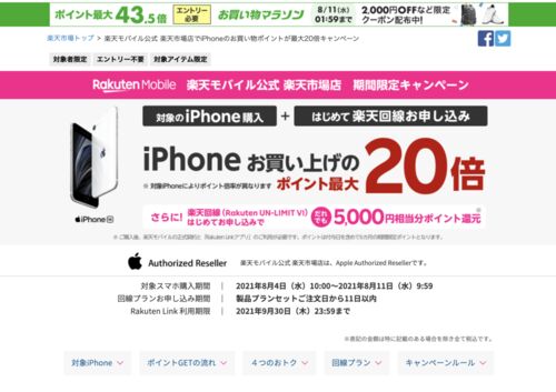 楽天モバイル公式 楽天市場店にて「iPhoneのお買い物ポイントが最大20倍キャンペーン」が開催されています。8月11日(水)までの期間中、iPhone12 SE (第2世代)やiPhone12など、対象のiPhoneをRakuten UN-LIMIT VIとセット注文し、新規お申し込みあるいは…