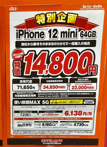 週末、いかがお過ごしでしょうか。 最近、iPhone12やiPhone13、iPhone SE (第3世代) などが一括特価となる施策が実施されていますが、今回は連休半ばとなった5月7日の状況を東京都内の家電量販店でチェックしてきました。 au、ソフトバンク、ドコモで、今週…