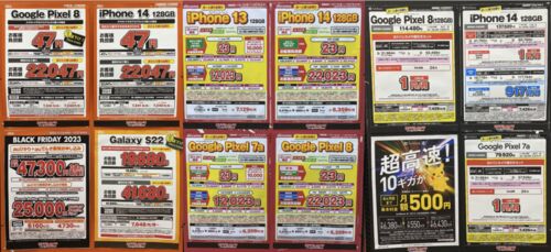 今週もiPhone 14、iPhone 13、iPhone SE3、Google Pixel 8、Pixel 8 Pro、Pixel 7a、Xperia、Galaxyなど主要なスマートフォンの一括および分割販売の状況を東京都内の家電量販店でチェックしてきました。 今回調査したのは、新宿のヨドバシカメラ新宿西口、…
