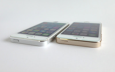 下の写真では、左側がColorant「USG ITG PRO」(シルバーのiPhone5)、右側がSPIGEN SGP「GLAS.t SLIM」(ゴールドのiPhone5s)です。
