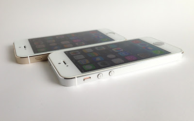写真左側がColorant「USG ITG PRO」を貼ったiPhone5(シルバー)、右側がSPIGEN SGP「GLAS.t SLIM」を貼ったiPhone5s