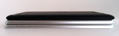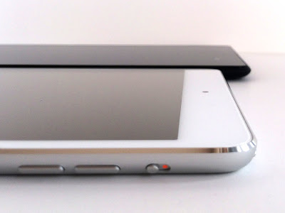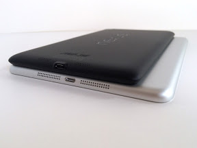 (写真手前がRetina iPad mini、奥がNexus7。Nexus7の方が明らかに厚みがある)