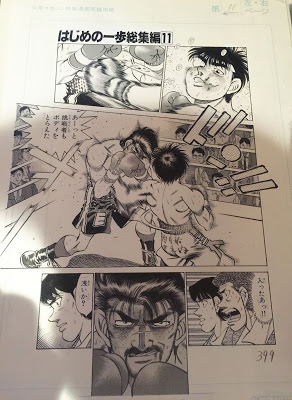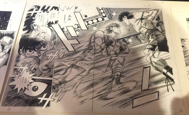 下の2枚目の原稿は素っ裸の鷹村。あそこの部分も原稿ではそのまま描かれていますが、印刷では加工されていました。