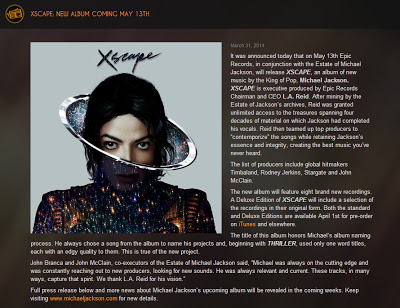 Michael Jacksonの新作アルバム「XSCAPE」(エクスケープ)が2014年5月13日(ニューヨーク現地時間)にリリースされることが発表されました。