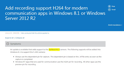 そのサポートページは、Windows 8.1やWindows Server 2012 R2に追加された新機能について書かれており、その新機能のアップデートが「Surface Pro 3のカメラ」をサポートすると説明されています。