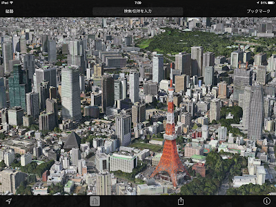 Apple標準マップによる東京タワー周辺の3D表示