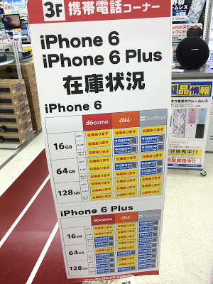 - iPhone 6 Plus:auでは、16GB、64GB、128GBモデルの在庫がありました。ドコモとSBは完売。