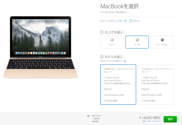 新しいMacBook (Retina, 12-inch, Early 2015) 、家電量販店では明日からですが、Apple Online Storeでは販売が始まりました。