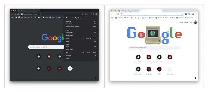 左が最新バージョン、右が旧バージョンのMac版Chrome