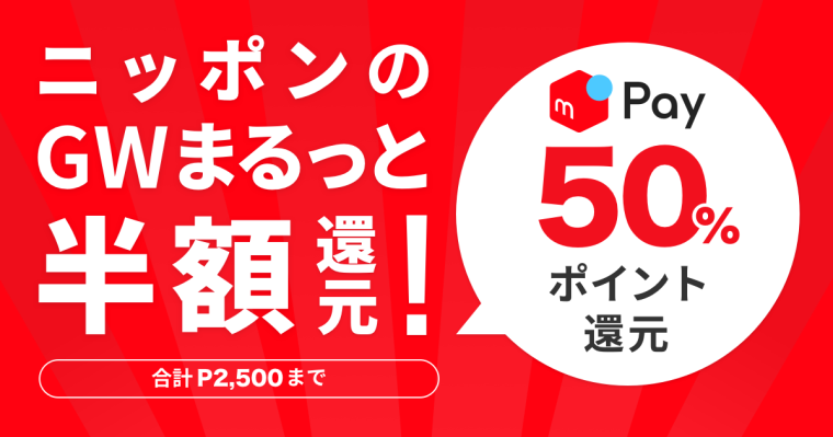 メルカリのスマホ決済サービス「メルペイ」は、本日4月26日より「日本のGWまるっと半額還元!」キャンペーンを開始しました。