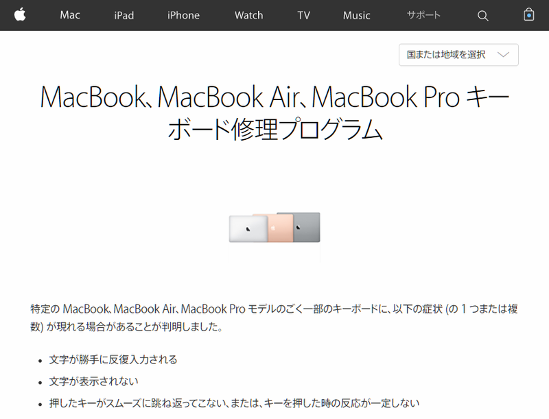 Appleは5月22日、特定の MacBook、MacBook Air、MacBook Pro モデルのごく一部のキーボードに不具合が現れる場合があるとして、対象製品を無償で修理する「MacBook、MacBook Air、MacBook Pro キーボード修理プログラム」を開始しました。