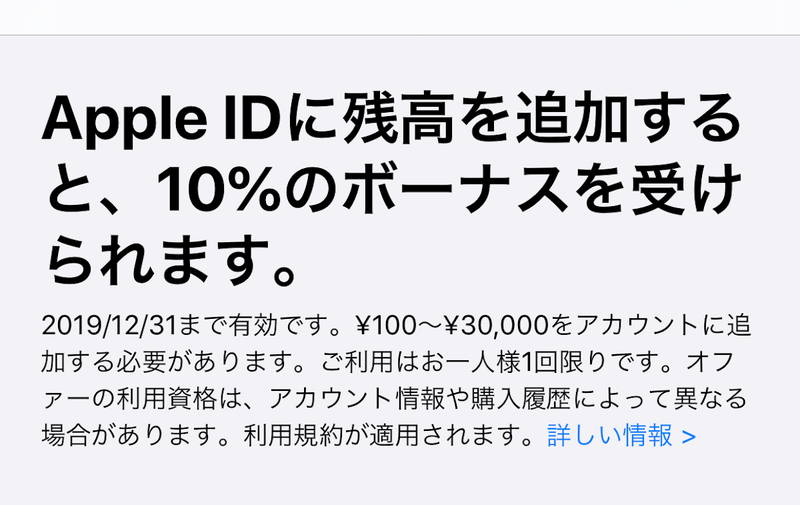 12月12日までだった、Apple IDに残高を追加すると10%分のボーナスがもらえるキャンペーン、12月31日まで期間延長しています。