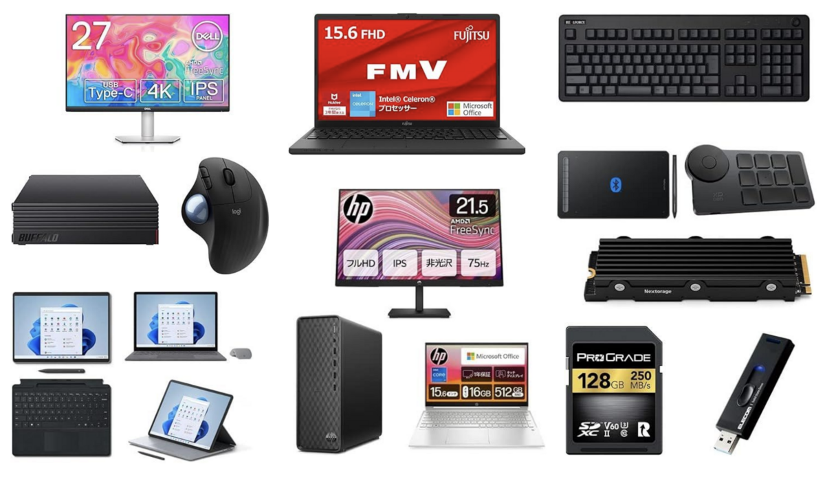 - PCパーツや外付けドライブ、メモリカードなどがお買い得