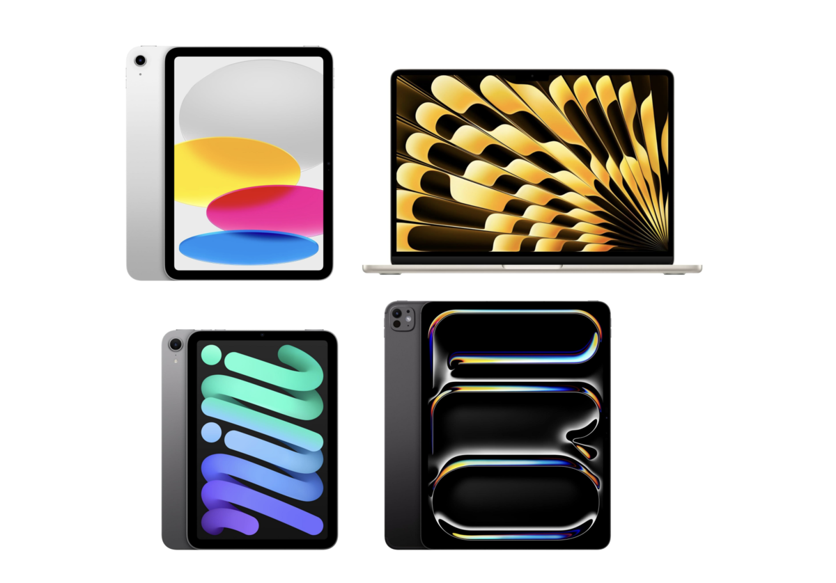 MacBook Air、iPad、iPad miniがそれぞれ現行モデル、iPad Proが旧型M4搭載モデルです。