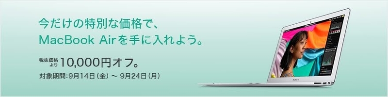 ビックカメラ.comにて、対象のApple MacBook Airが10,000円引きとなる期間限定のキャンペーン「今だけの特別な価格でMacBook Airを手に入れよう」が開催されています。