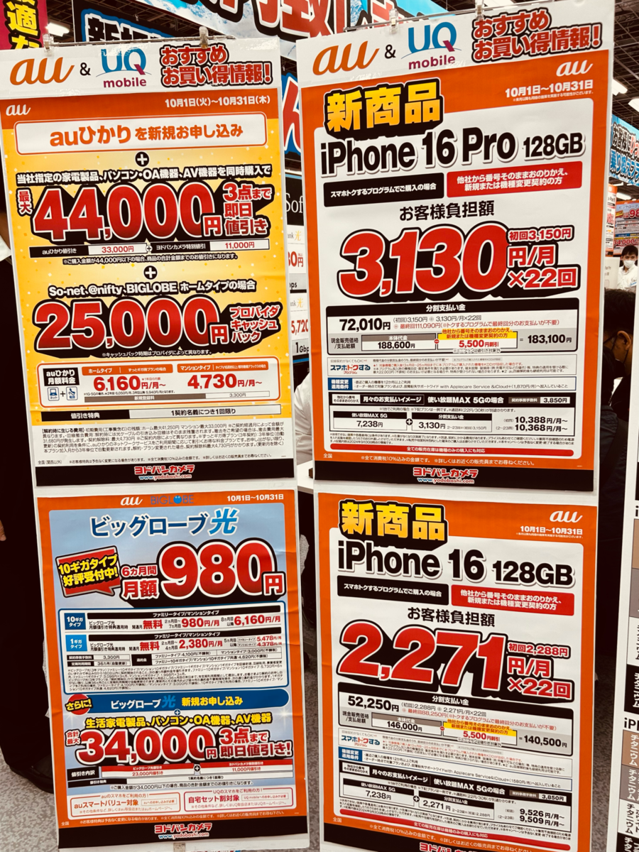 今週も、ソフトバンク、au、ドコモの、iPhone 16、iPhone 15、iPhone 14、Google Pixel 9、Pixel 8a、Pixel 8、Xperia、Galaxyなど主要なスマートフォンの一括および分割販売が実施されていました。