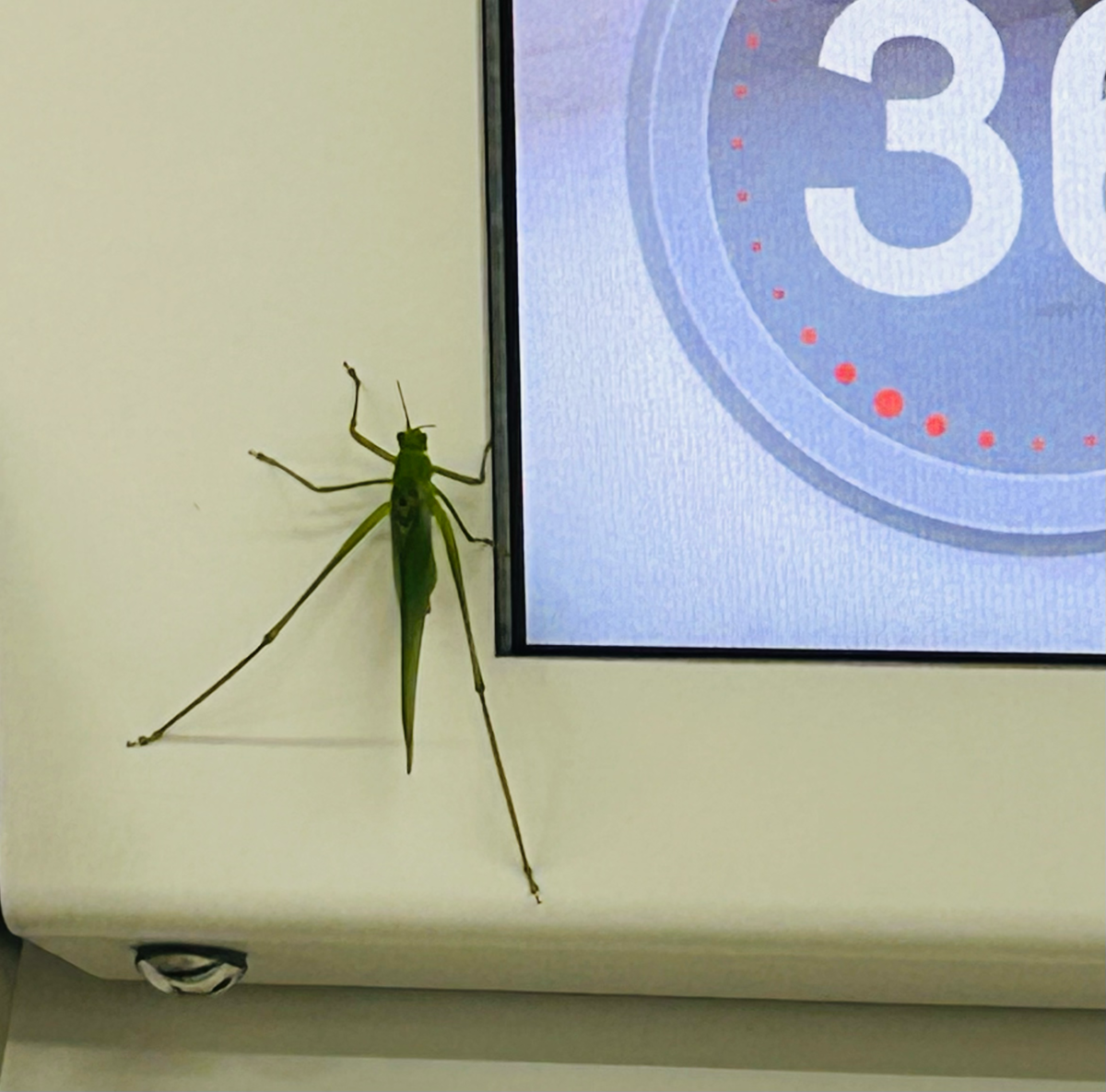 このバッタ、どこから乗って、どこへ向かうのでしょうか。。。