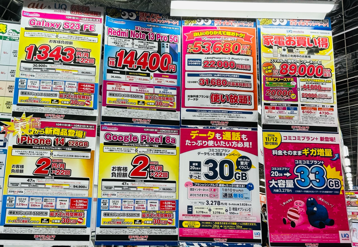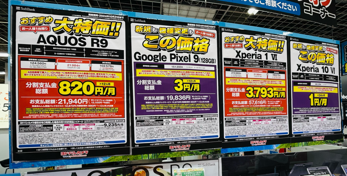 また、1円ではありませんが、ドコモではiPhone 16が毎月469円で2年間使えるとの話もヨドバシカメラで聞けました。なお、POPでは案内されていない案件とのこと。