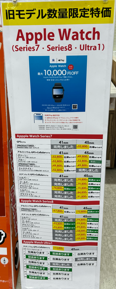 対象のApple WatchをApple PayのQUICPayで支払うと最大10,000円OFFとなるキャンペーンが実施されていました。